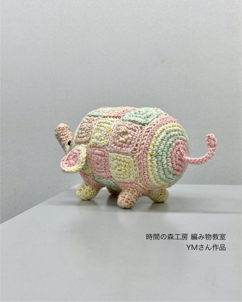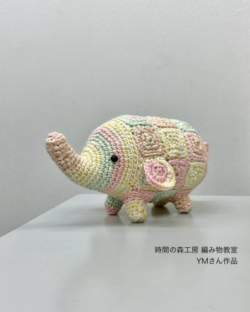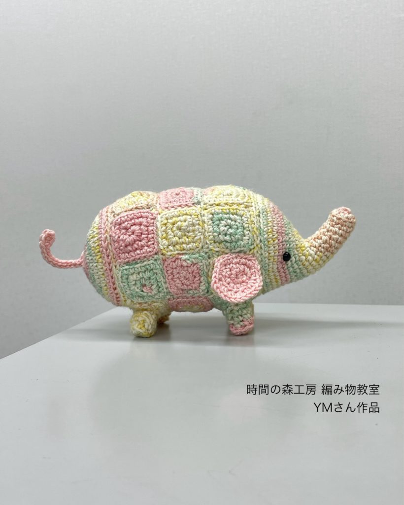 YMさんは、かぎ針編みの課題をやりながら、こちらのゾウのあみぐるみも編まれていました。